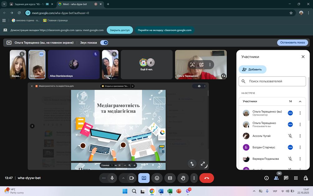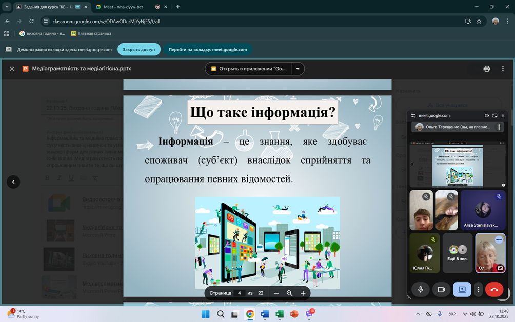 5. Проведено виховні години «Медіагігієна та інформаційна компетентність» в навчальних групах (22.10.2025).