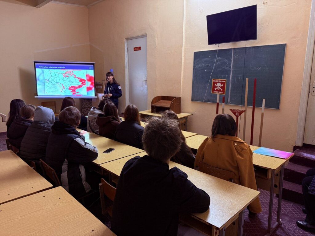 СТОП МІНИ. ЖИТТЯ БЕЗ РИЗИКУ. 8 квітня 2026 року до Миколаївського професійного промислового ліцею завітали фахівці з надання інформації міжнародної гуманітарної організації «The HALO Trust» Дуліна Катерина і Журілов Артем. Вони провели лекцію з мінної безпеки для студентів І курсу і педпрацівників. Учасники заходу були ознайомлені з ознаками потенційно небезпечних територій, знаками маркування вибухонебезпечних предметів (ВНП), а також з алгоритмом дій у разі їх виявлення.